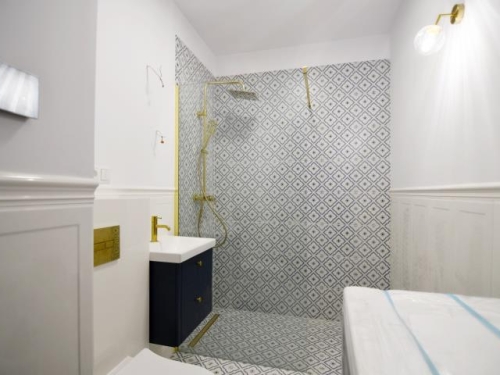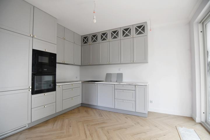 Mieszkanie jest w trakcie wykańczania - istnieje możliwość umeblowania pokoi pod preferencje najemcy. Kuchnia wyposażona we wszystkie niezbędne sprzęty AGD (zmywarka, lodówka, płyta indukcyjna, piekarnik, mikrofalówka). W łazience prysznic typu walk-in z odpływem liniowym i deszczownicą, geberit, umywalka z lustrem, pralka. W przedpokoju duża szafa w zabudowie.